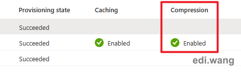 From the test results, only the Windows App Service plan enables Gzip compression by default at the server level. Azure currently does not expose a UI setting for this, but you can disable it using a small configuration trick.