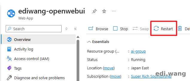 The final step is to restart your website. This is super important for your application settings to be effective. After that, you can visit your website URL and get started with Open WebUI.