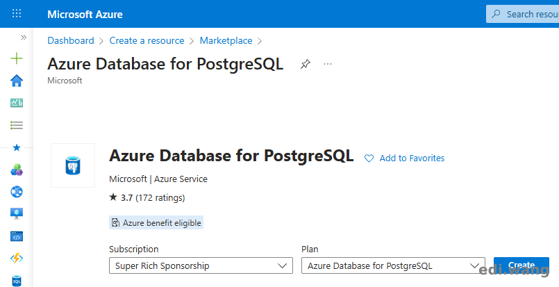 Click Create a resource, search for Azure Database for PostgreSQL.