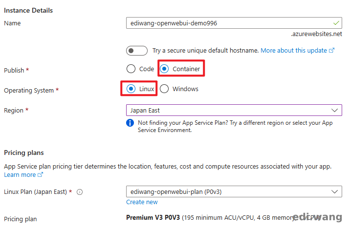 Step 3: Configure App Service with Open WebUI and Environment Variables