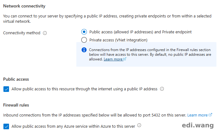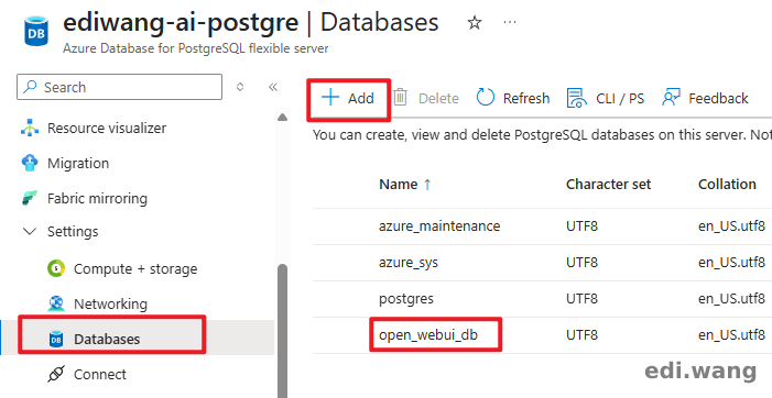 In this case, the example would be: postgresql://edi:********@ediwang-ai-postgre.postgres.database.azure.com:5432/open_webui_db